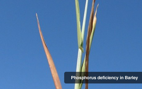 Phosphorus deficiency is more difficult to diagnose than a deficiency of N or potassium (K). Crops usually display no obvious symptoms of P deficiency other than a general stunting of the plant during early growth, and by the time a visual deficiency is recognized, it may be too late to correct in annual crops.