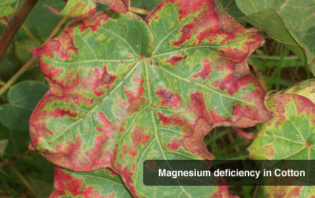 Magnesium is mobile within the plant and easily translocates from older to younger tissues. When deficiencies occur, the older leaves become damaged first, which may include color loss between the leaf veins, beginning at the leaf margins or tips and progressing inward, giving the leaves a striped appearance.